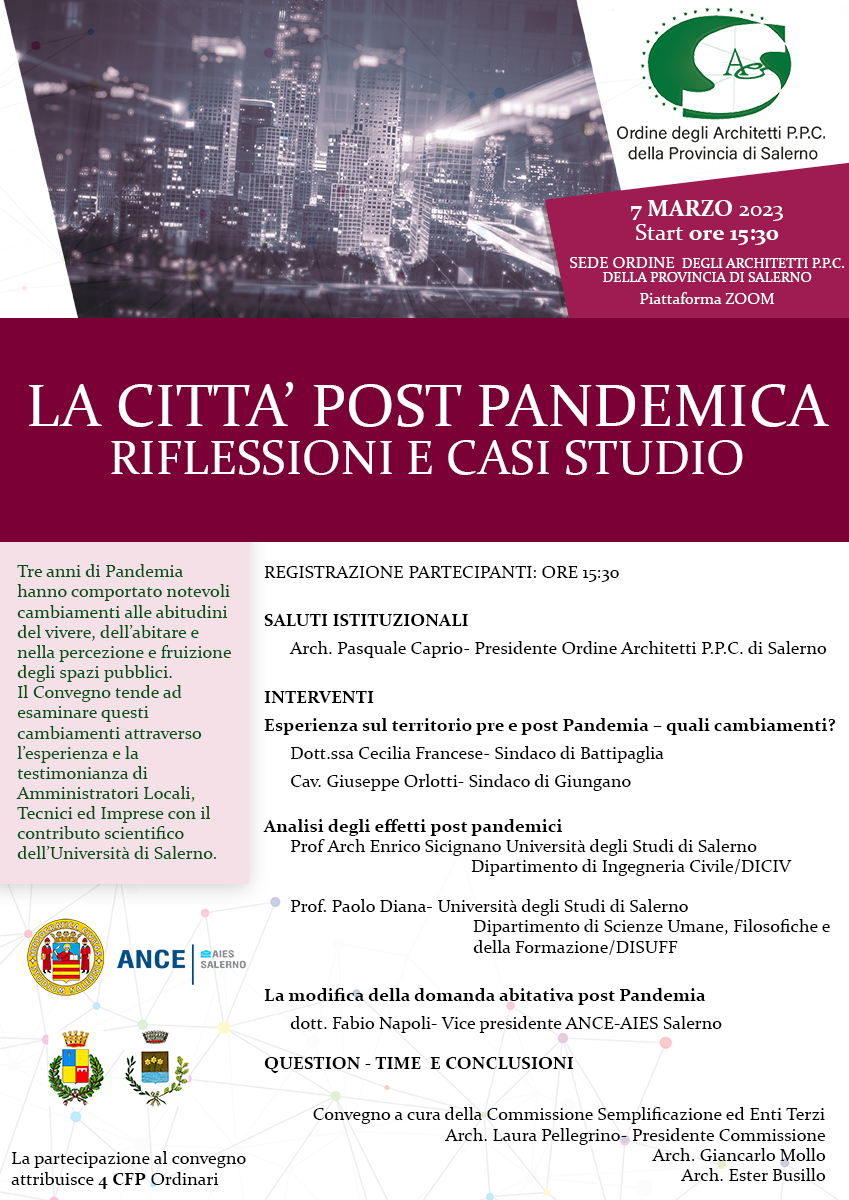 LA CITTA’ POST PANDEMICA RIFLESSIONI E CASI STUDIO
