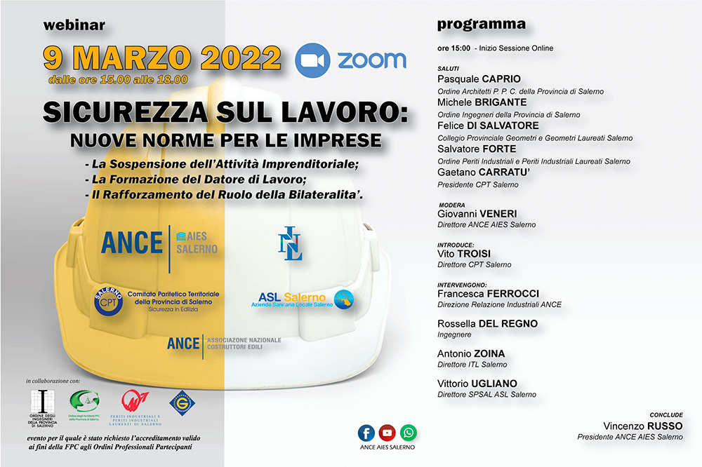 15.00 alle ore 18.00, il Webinar “Sicurezza sul lavoro: