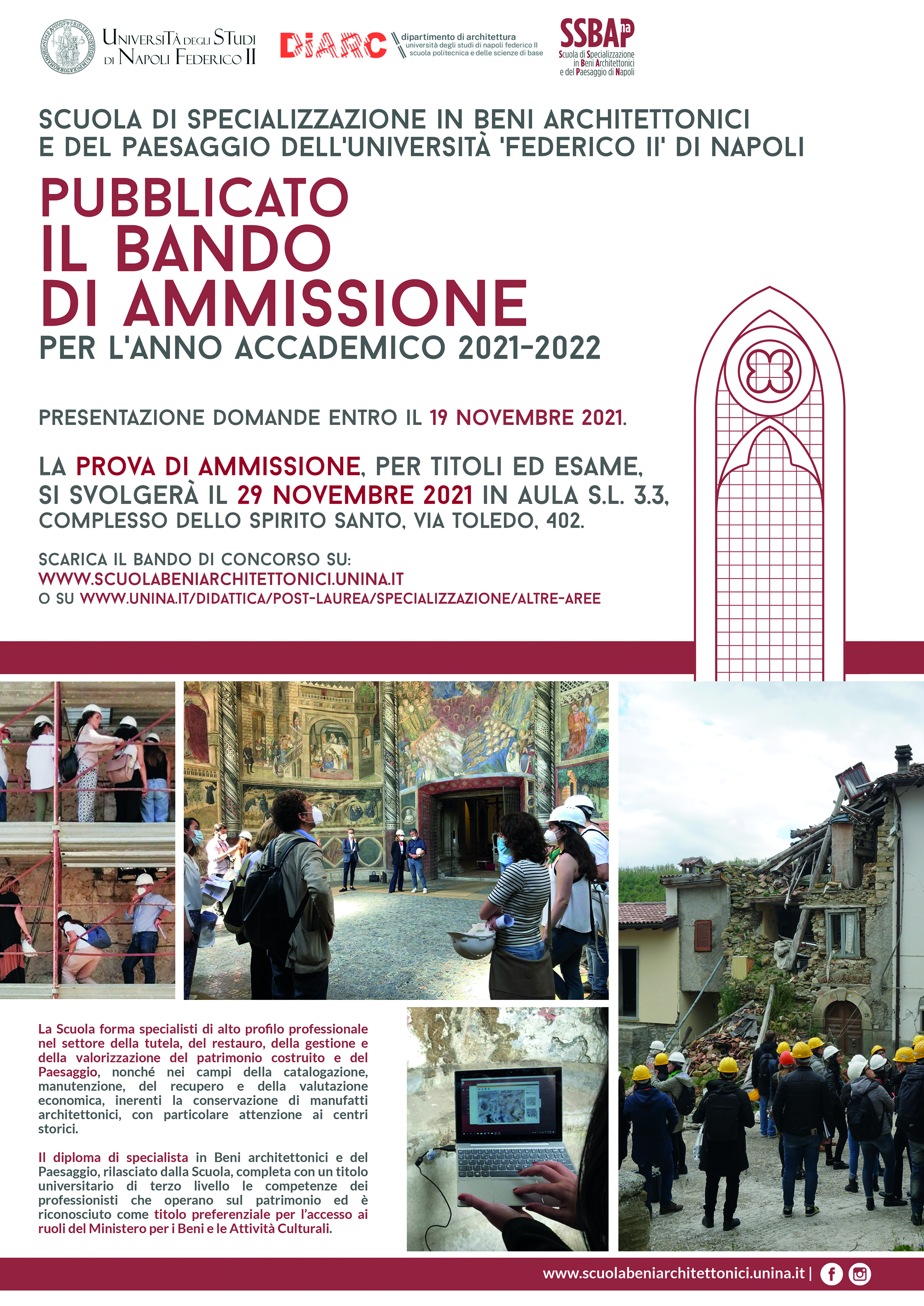 Bando di ammissione della Scuola di specializzazione in Beni architettonici e del Paesaggio dell'Università di Napoli Federico II.